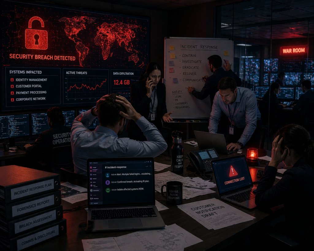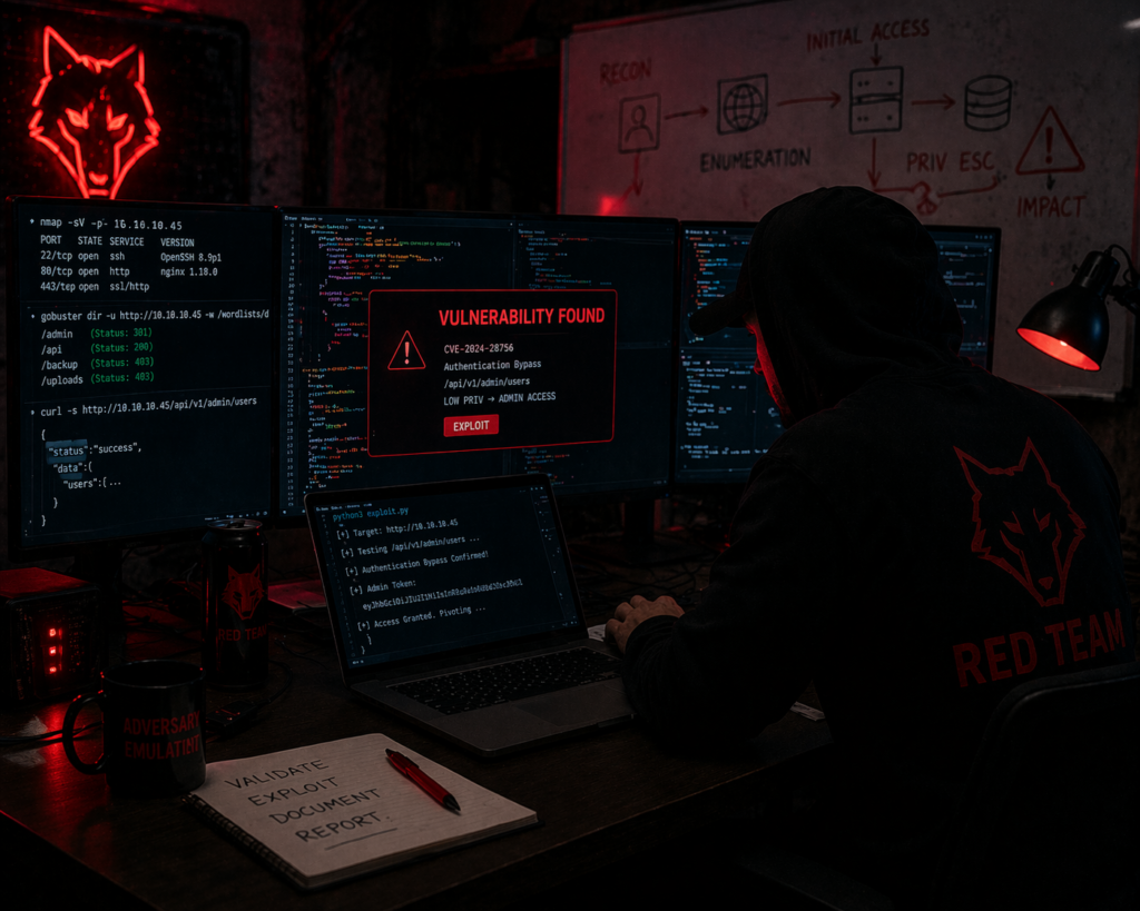 A red team exercise is a goal-oriented adversary simulation where ethical attackers attempt to achieve a defined objective — such as exfiltrating sensitive data — using the same techniques as real-world threat actors. The aim is to test the organisation’s detection, response, and resilience, not to enumerate every technical vulnerability.
